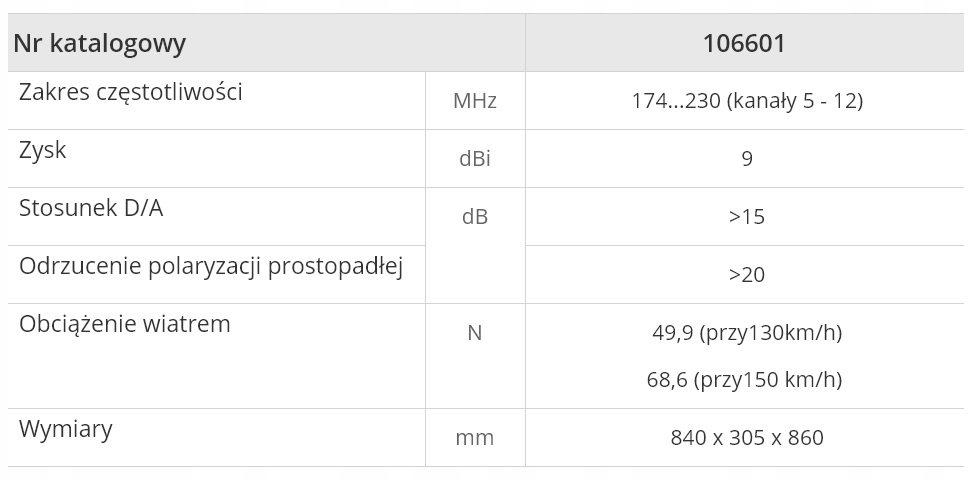 Wysokiej jakości antena hiszpańskiej marki Televes zaprojektowana do odbioru cyfrowego radia DAB / DAB+ oraz darmowych kanałów telewizji naziemnej DVB-T z pasma VHF, tzw. MUX-8. Antena zapewnia optymalną wydajność zarówno pod względem przepustowości, jak i zysku. Niewątpliwie jej zaletą jest łatwość montażu. Wykonano ją z wysokiej jakości aluminium o dużej odporności mechanicznej.