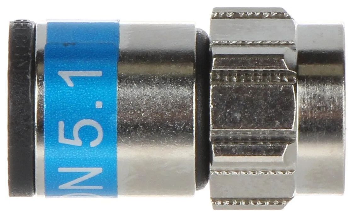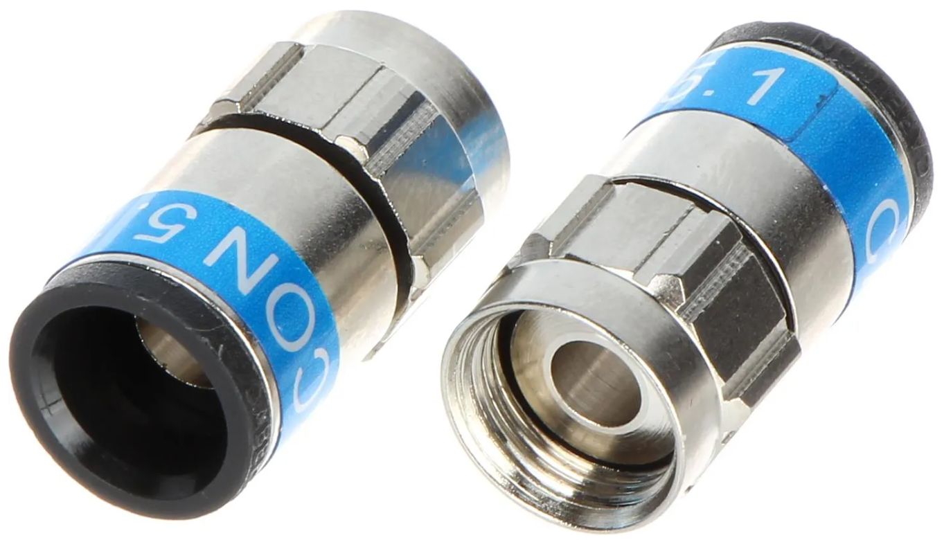 Złącze kompresyjne, produkowane przez duńską firmę CABELCON 5.1 zostało tak skonstruowane, że do jego montażu nie jest wymagane żadne specjalistyczne narzędzie. Odpowiednio obrobiony przewód wsunięty do złącza podlega samozaciskaniu podczas nakręcania złącza na gniazdo F.