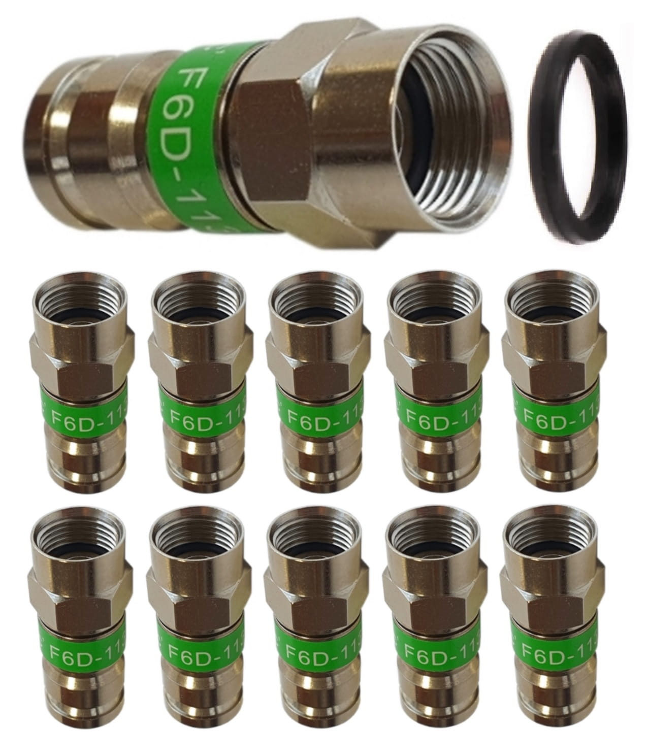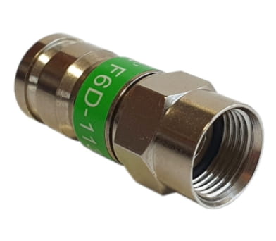 Wysokiej klasy złącze kompresyjne, które posiada podwójną kompresje dookolną, gwarantującą perfekcyjne połączenie z kablem. Dokładnie wykonany gwint gwarantuje łatwe nakręcanie na gniazdo, przy minimalnym tłumieniu. Złącze będące przedmiotem oferty doskonale zastępuje zielone złącza PCT serii 9, Master F 113 i inne tego typu.