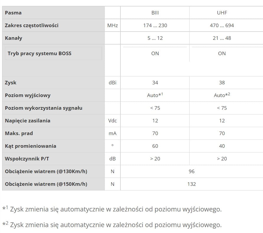- Niezależne sterowanie VHF i UHF: oddzielna regulacja minimalizuje możliwe różnice poziomów między oboma pasmami