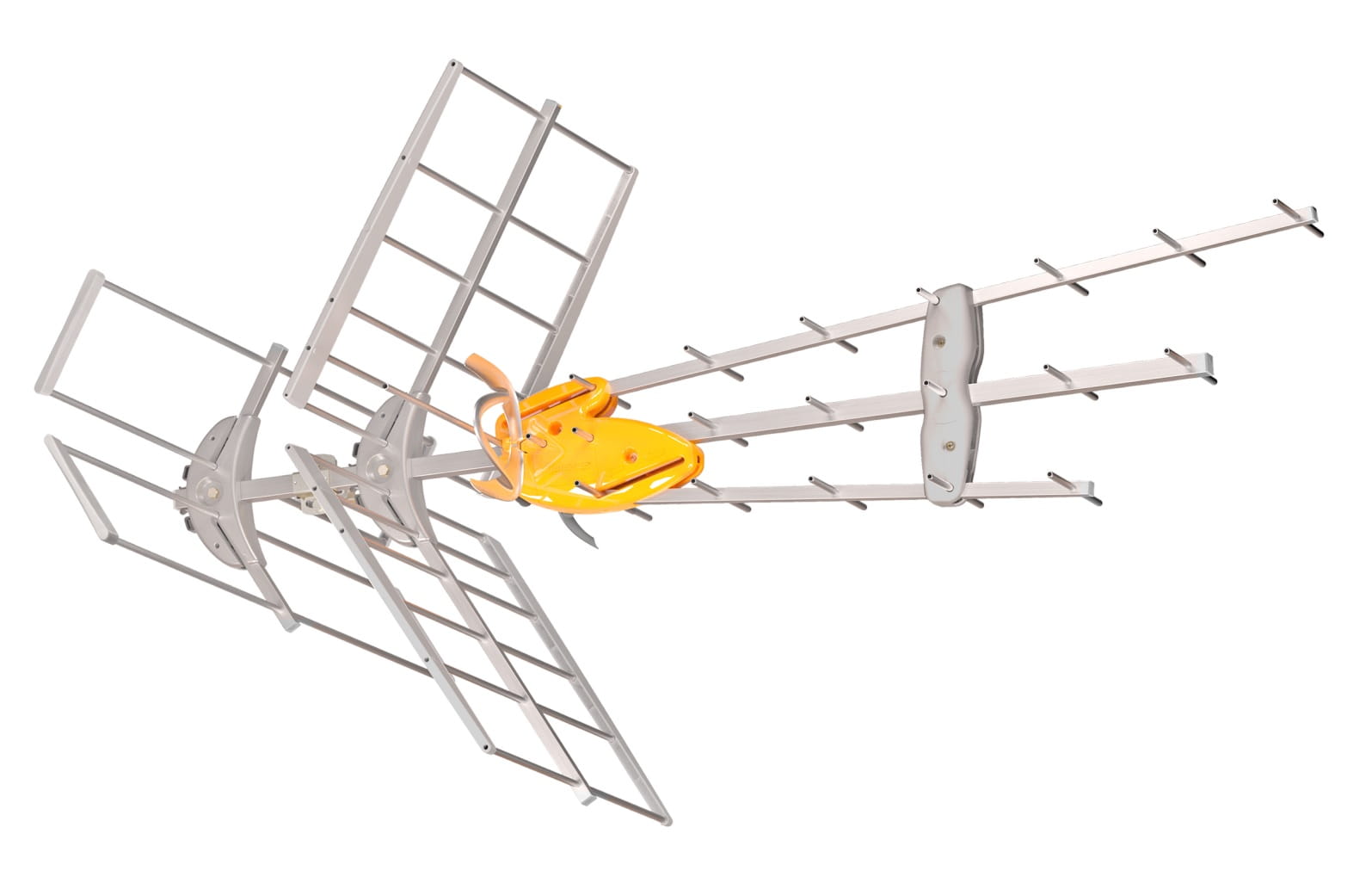 - Konstrukcja DAT, oparta na 3 antenach Yagi z asymetrycznymi direktorami, zapewnia wysoką kierunkowość i optymalną charakterystykę promieniowania przeciw echom
