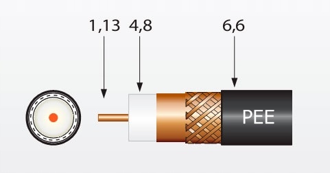 - Przewód wewnętrzny - Ø 1,13 mm, miedziany