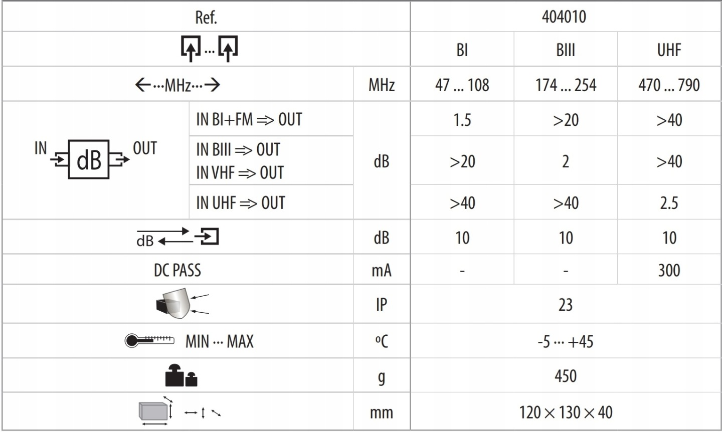Zwrotnica FM i telewizji DVB-T UHF i VHF / radio DAB+ Televes ref. 404010
