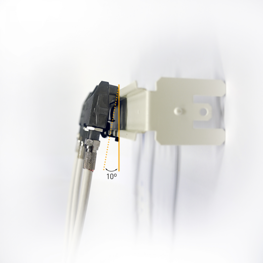 - Wygodne przykręcanie kabla, dzięki 10º kątowi nachylenia złączy F od ściany instalacyjnej