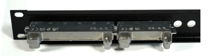 - Złącza F z dłuższym gwintem, ułatwiające i zabezpieczające montaż na płycie rack