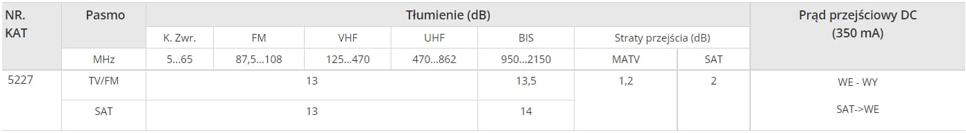 - Przejście DC ze złącza SAT w kierunku wejścia