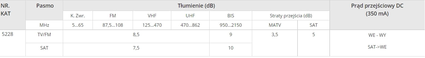 - Przejście DC ze złącza SAT w kierunku wejścia