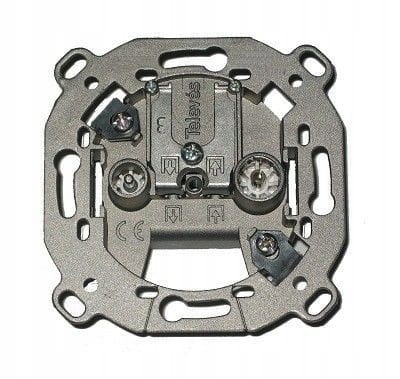 Gniazdo przelotowe wyposażone w dwa złącza IEC - złącze IEC męskie do FM (radio) i TV naziemnej (strona lewa), złącze IEC żeńskie do TV satelitarnej (IF, strona prawa). Umożliwia przejście sygnału i szeregową instalację kilku gniazd. Ponadto, ze względu na tłumienie, gniazdo to jest odpowiednie do instalacji na kondygnacji 2. Zalecana instalacja z gniazdami końcowymi nr kat. 5229xx.