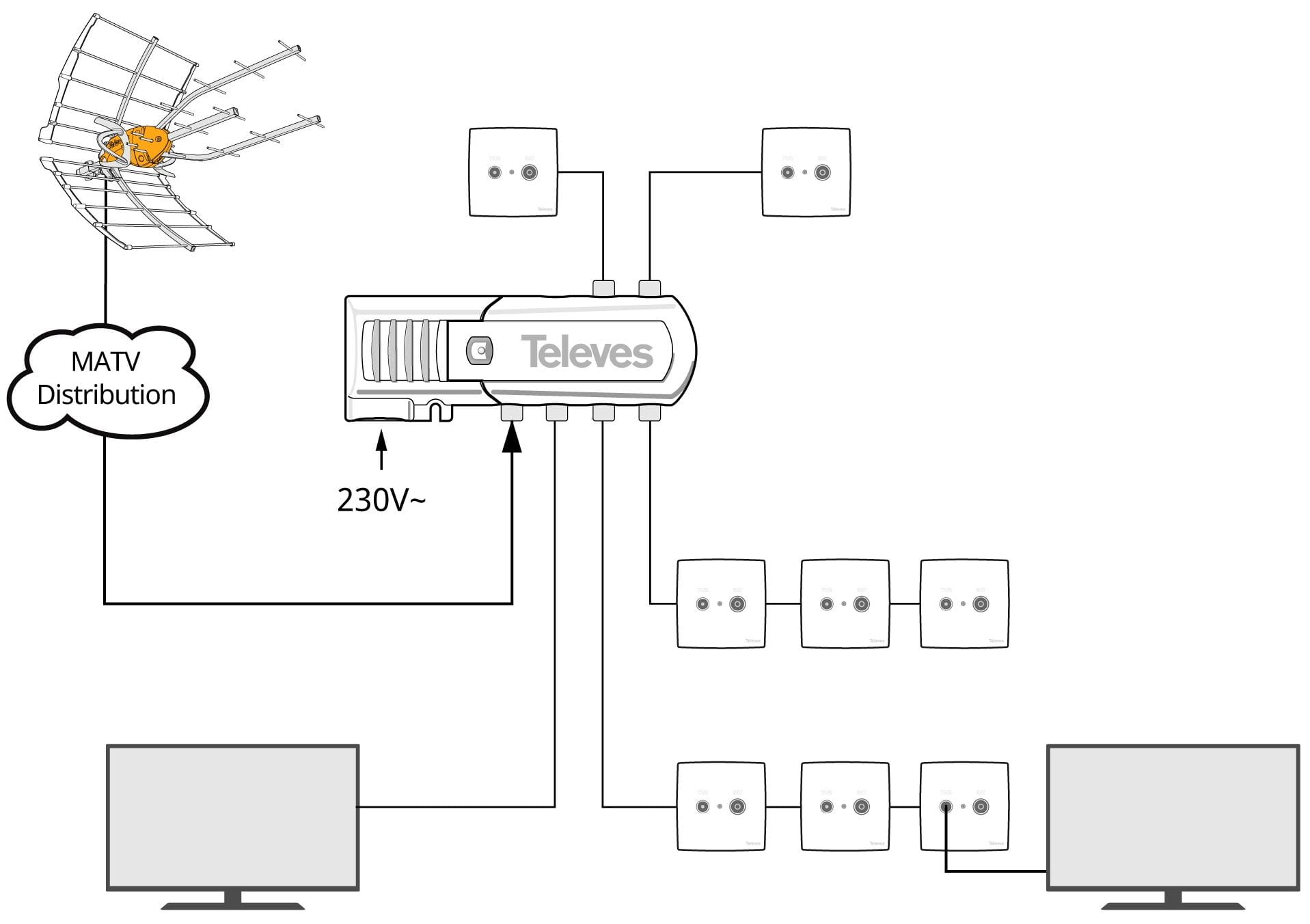 Hiszpański producent firma Televes gwarantuje wysoką jakość wykonania urządzeń do dystrybucji sygnału. Szeroka gama wzmacniaczy domowych stosowanych w MATV charakteryzuje się stosunkowo wysoką mocą wyjściową i niskim poborem prądu.