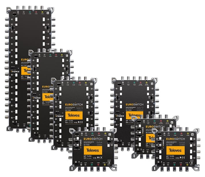 Euroswitch to nowa seria multiswitchy Televes. Euroswitche mają wbudowane oporniki, gdzie za pomocą przełącznika, można ustawić je jako multiswitche końcowe lub kaskadowe.