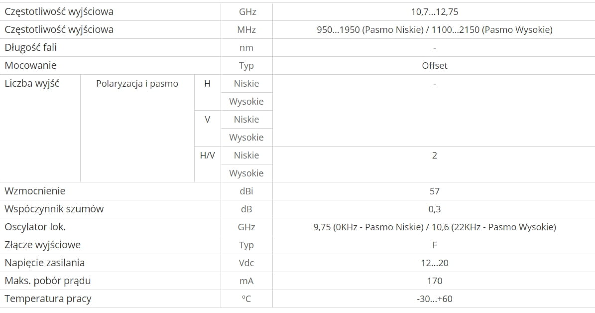 Konwerter Twin pozwala na odbiór programów cyfrowych i analogowych telewizji i radia przez satelitę w jakości SD oraz HD (w tym Ultra HD 4K). Twin charakteryzuje się podwójnym wyjściem zawierającym pełne pasmo satelitarne. Umożliwia to podłączenie dwóch niezależnych dekoderów lub jednego dekodera satelitarnego PVR z podwójną głowicą.
