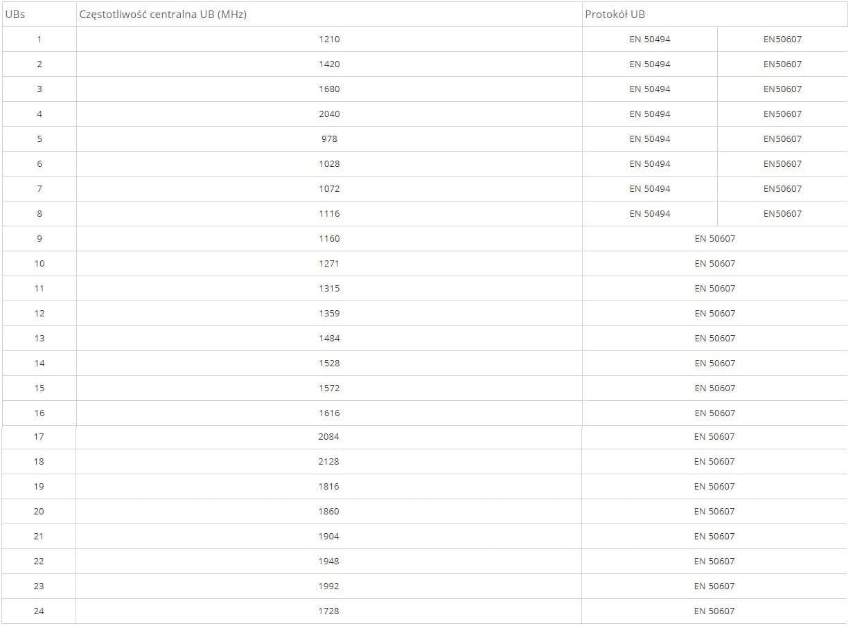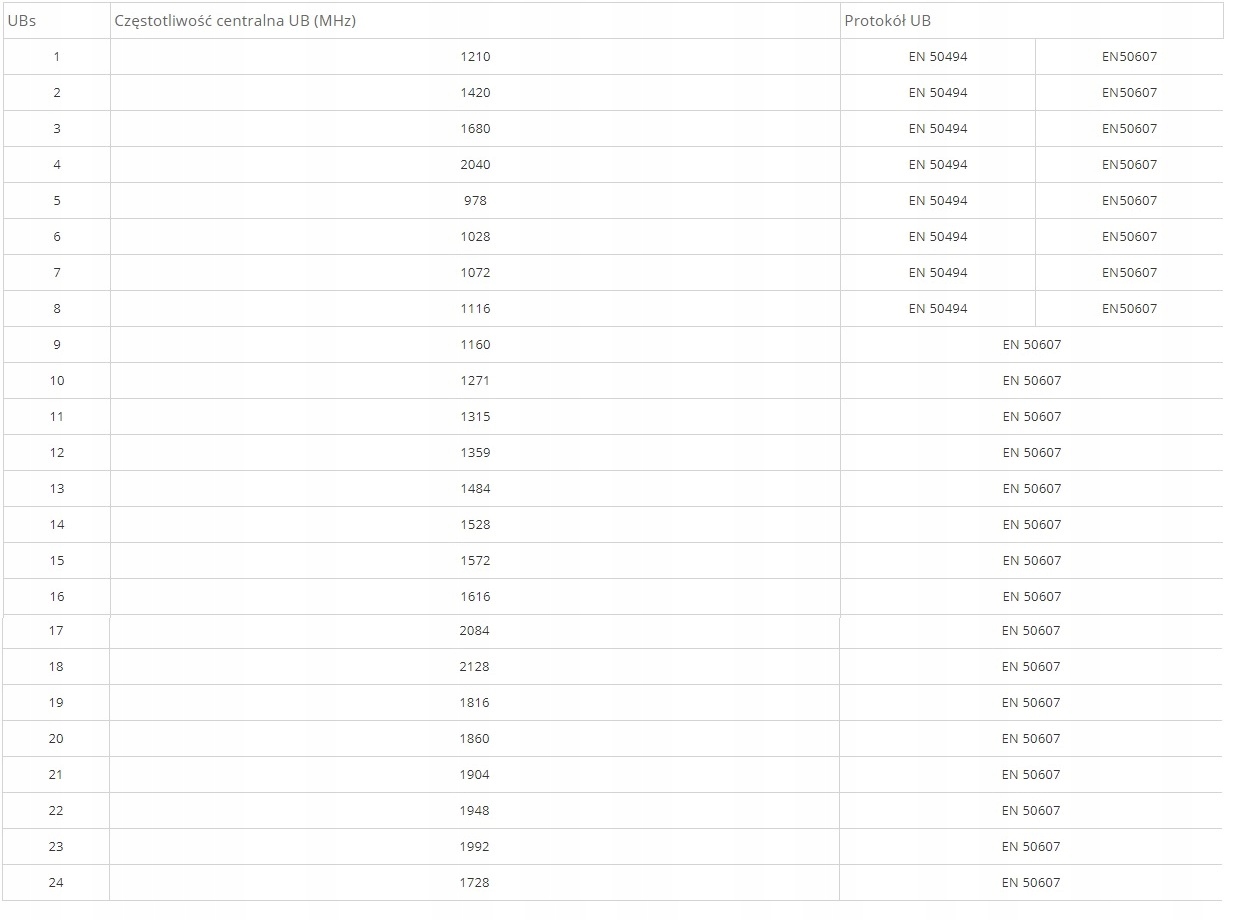 Obsługiwane częstotliwości: