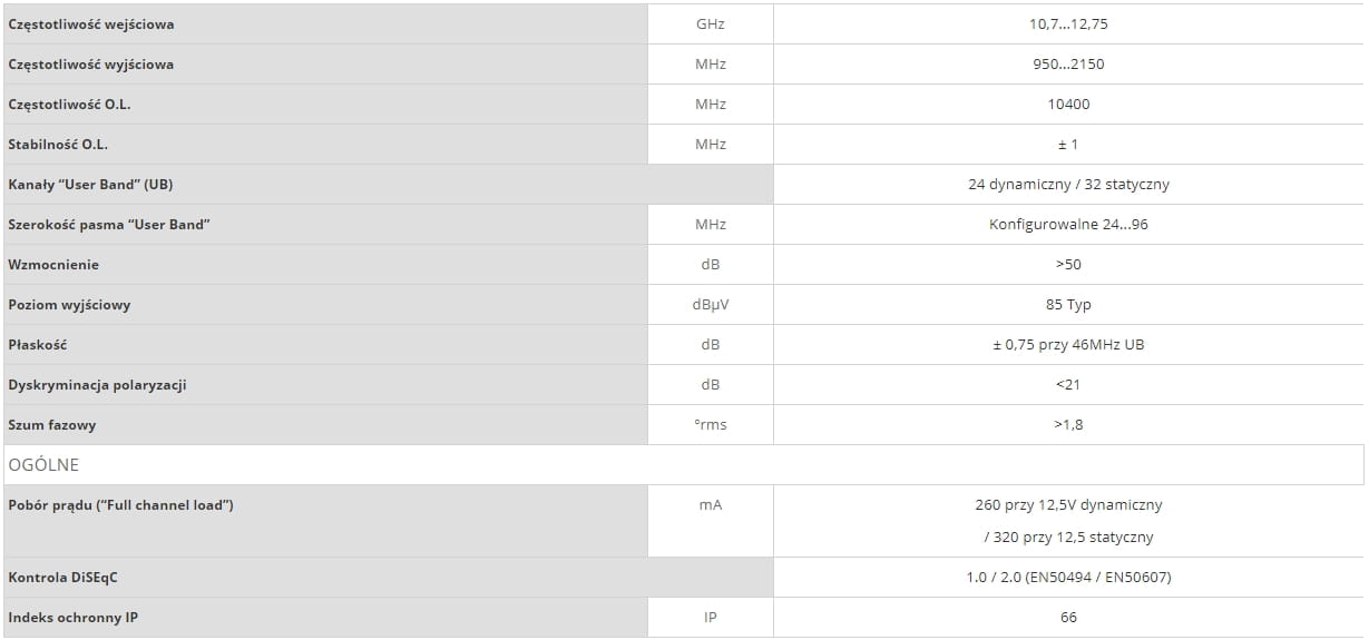 Konwerter LNB Unicable II Televes pozwala na jednoprzewodową (szeregową) transmisję sygnału do 24 odbiorników.