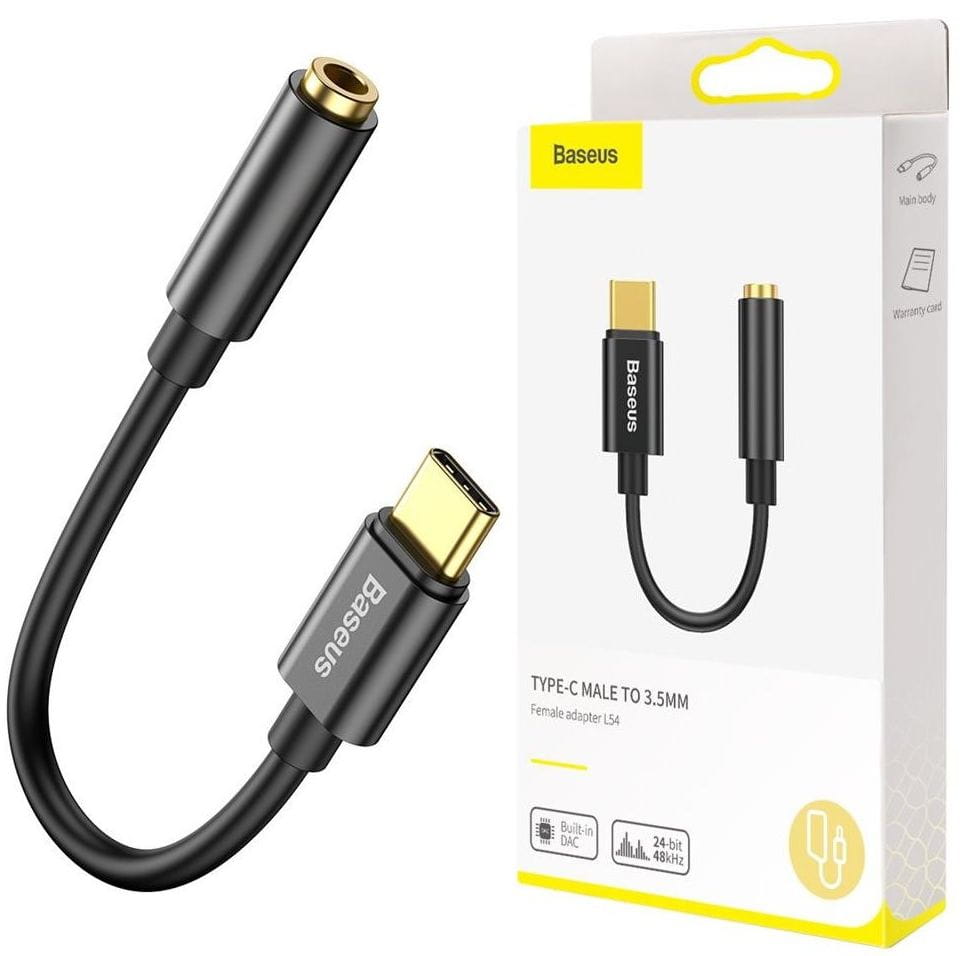 Adapter L54 firmy Baseus to przejściówka pozwalająca na podłączanie akcesoriów (np. słuchawek) ze złączem Jack 3,5 mm do urządzeń posiadających wejście USB typu C.