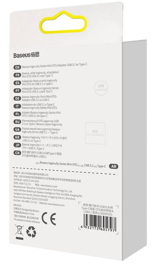 BASEUS Adapter Ingenuit USB-A 3.1 USB-C OTG czarny