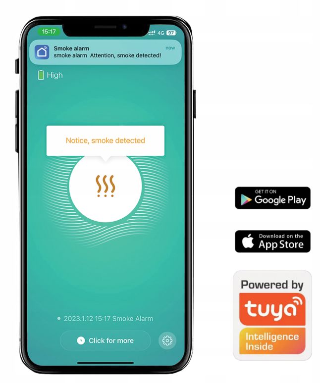 Wbudowany moduł Wi‑Fi umożliwia połączenie czujnika z aplikacją Tuya Smart lub Smart Life (Android / iOS), dzięi czemu można: