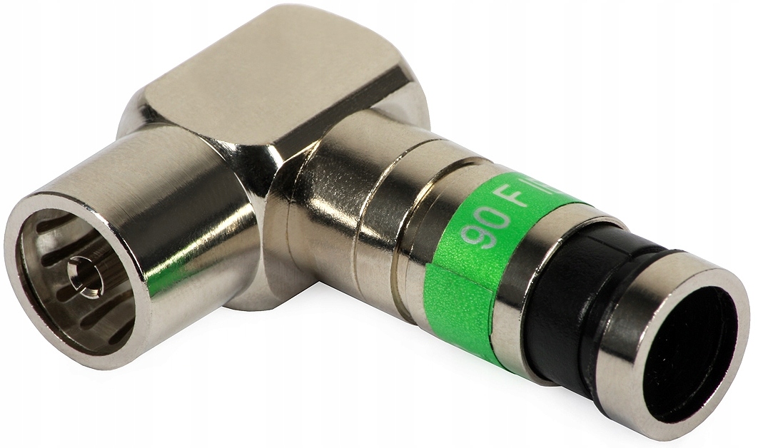 Wysokiej klasy kątowe złącze kompresyjne, marki MASTER. Złącze posiada podwójną kompresje dookolną, gwarantującą perfekcyjne połączenie z kablem. Dokładnie wykonany gwint gwarantuje łatwe wetknięcie na gniazdo antenowe, przy minimalnym tłumieniu. Złącze będące przedmiotem oferty doskonale zastępuje złącza PCT IEC serii 9. Powszechnie używane w instalacjach telewizyjnych (w tym telewizji naziemnej DVB-T i kablowej DVB-C).
