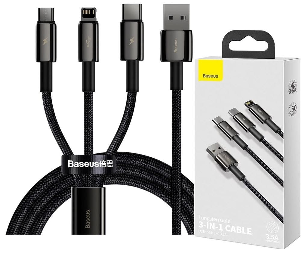 Kabel 3w1 USB 1,5m BASEUS Tungsten czarny