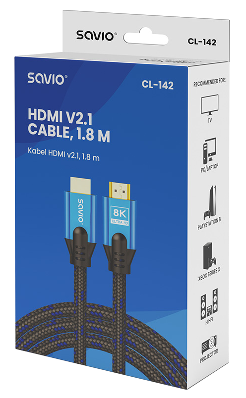 Kabel HDMI 1,8m 2.1 8K 60HZ UHD Savio CL-142