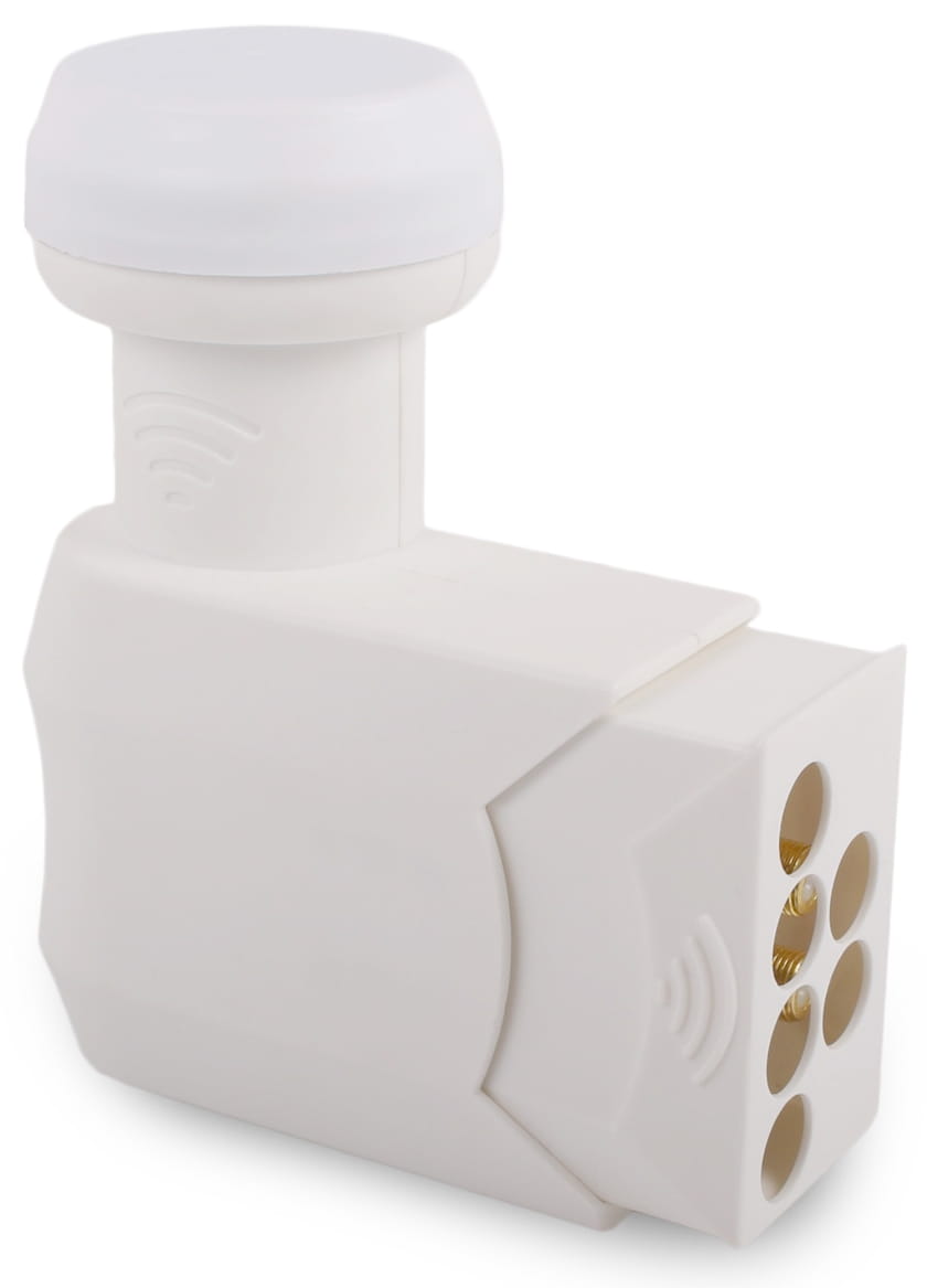 Konwerter umożliwia podłączenie jednego dekodera działającego w technologii Wideband dwoma przewodami (wyjścia złote w konwerterze) oraz do czterech dekoderów satelitarnych z pojedynczymi głowicami lub do dwóch z podwójnymi głowicami PVR (wyjścia srebrne w konwerterze).