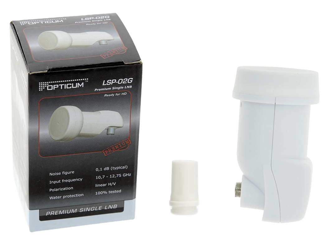 Pojedynczy konwerter Single marki Opticum o niskim współczynniku szumów 0,1 dB umożliwia odbiór sygnału satelitarnego przez jeden odbiornik satelitarny.