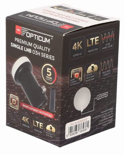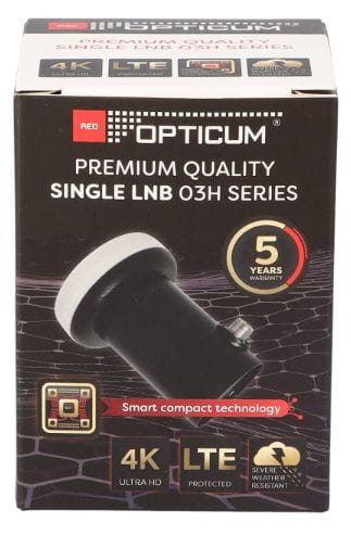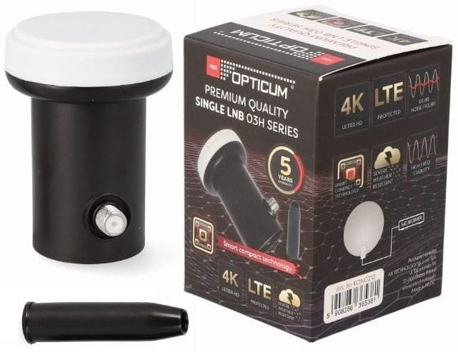 Pojedynczy konwerter Single marki Opticum o niskim współczynniku szumów 0,1 dB umożliwia odbiór sygnału satelitarnego przez jeden odbiornik satelitarny.