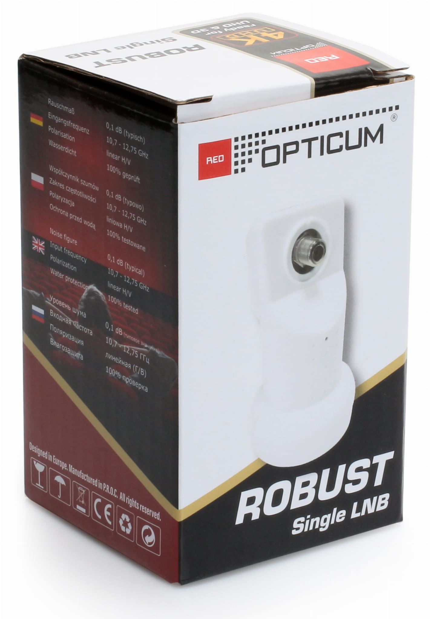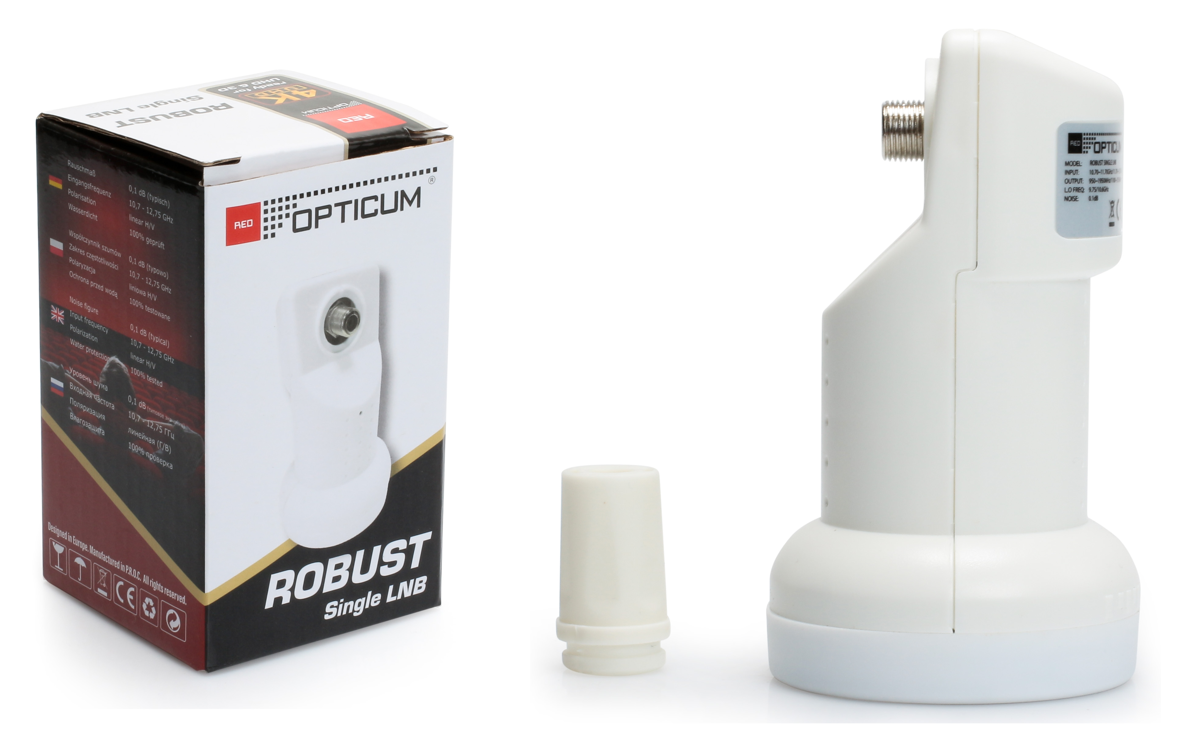 Pojedynczy konwerter Single marki Opticum o niskim współczynniku szumów 0,1 dB umożliwia odbiór sygnału satelitarnego przez jeden odbiornik satelitarny.