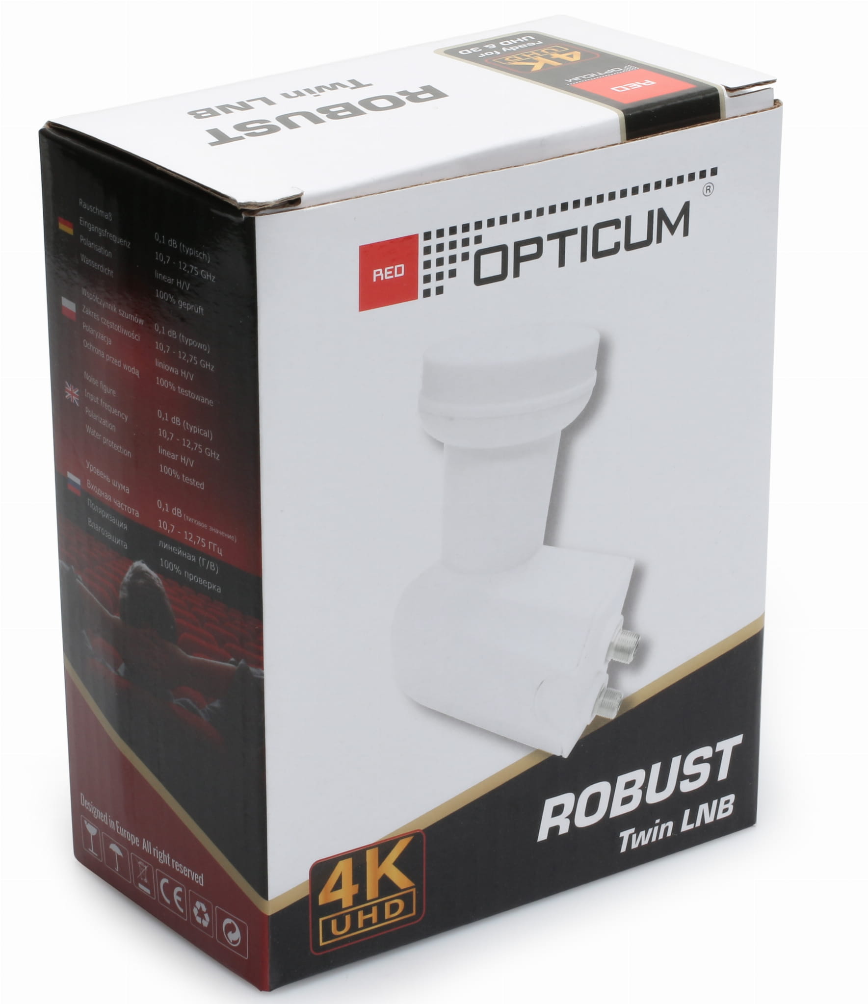 Podwójny konwerter marki Opticum typu Twin służy do odbioru sygnału z jednego satelity przez dwa niezależne tunery lub do tunerów z dwoma wejściami. Posiada osłonę przeciwdeszczową.