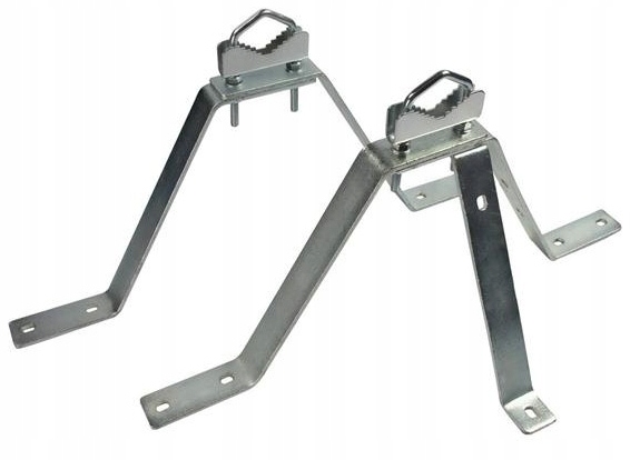 Obejma masztu wykonany jest ze stali ocynkowanej. Wyróżnia ją wysoka jakość oraz estetyka wykonania. W zestawie są 2szt. obejmy. Umożliwia montaż masztu do elewacji budynku lub komina, odległość masztu od miejsca montażu wynosi 35 cm.