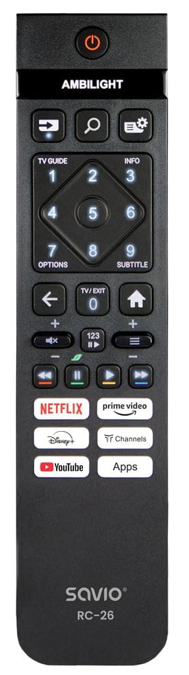 Pilot RC-26 umożliwia obsługę wszystkich funkcji nowoczesnych telewizorów Smart TV (czyli telewizorów z dostępem do Internetu i aplikacji takich jak Netflix, YouTube czy Spotify). Bez względu na to, czy chcesz przełączać kanały, regulować głośność czy korzystać z platform streamingowych – wszystko zrobisz jednym kliknięciem.