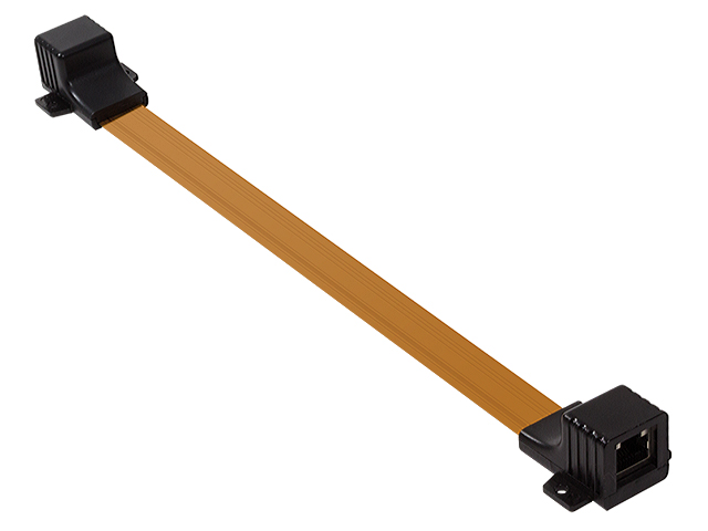 Oferowana przelotka służy do połączenia dwóch przewodów zakończonych wtykiem typu RJ45. Łącznik wykonany jest z cienkiej, miedzianej,wytrzymałej i odpornej na zginanie taśmy zakończonej obustronnie gniazdami RJ45 (8P8C). Łącznik można stosować jako przepust okienny, ścienny i drzwiowy.