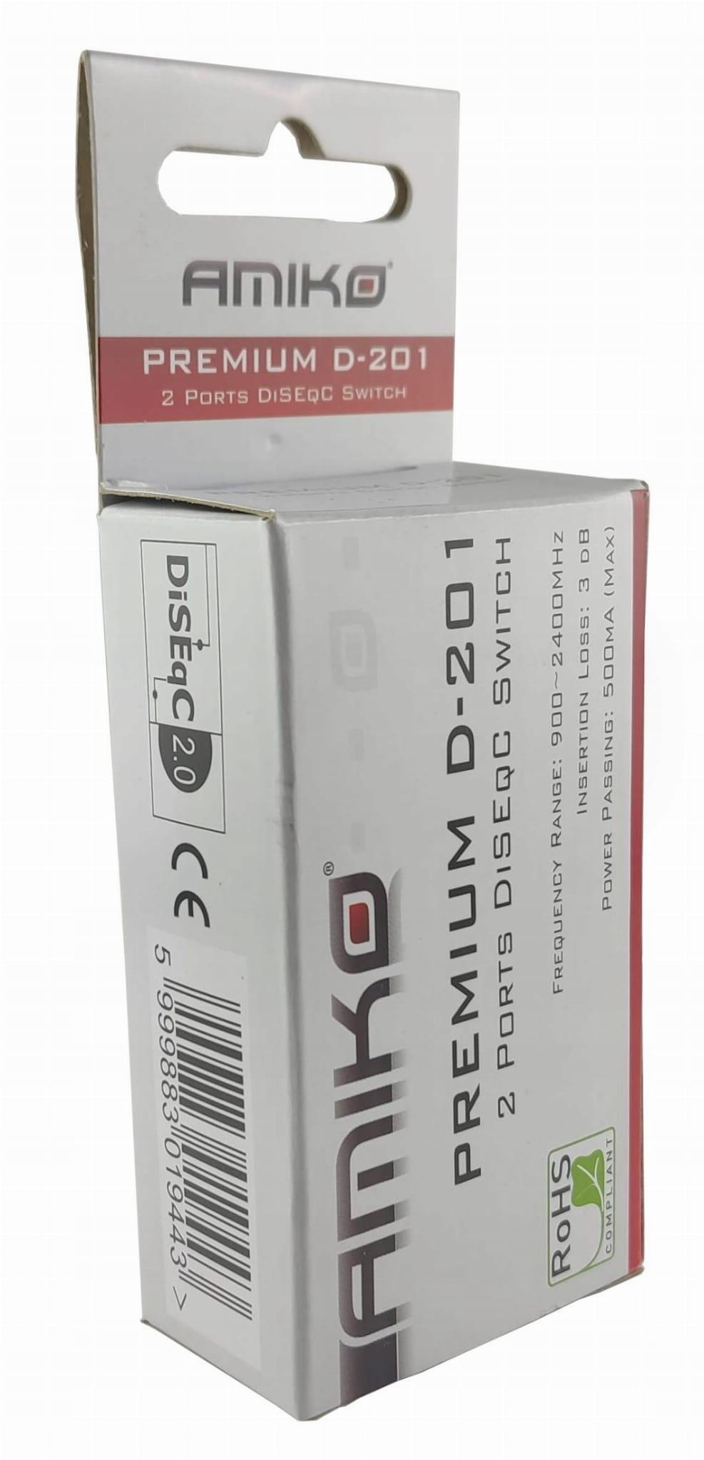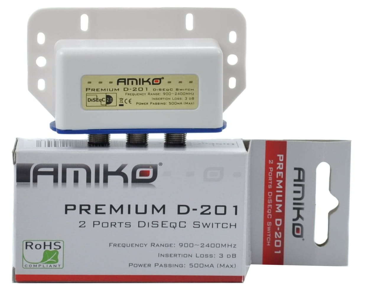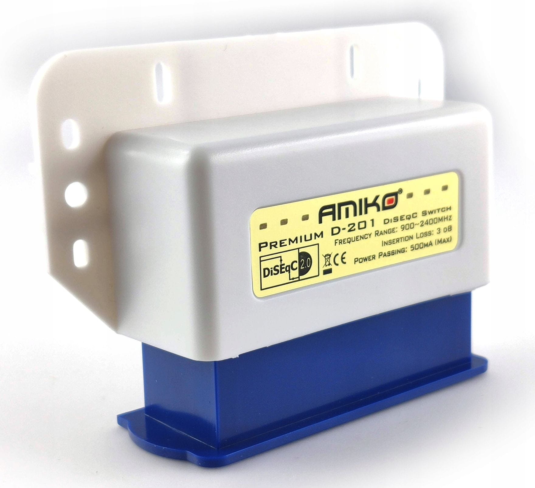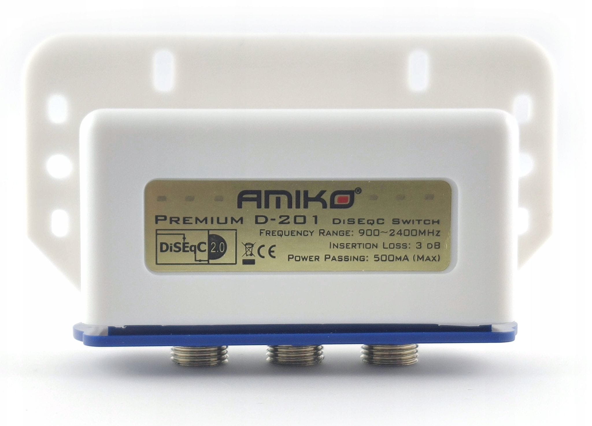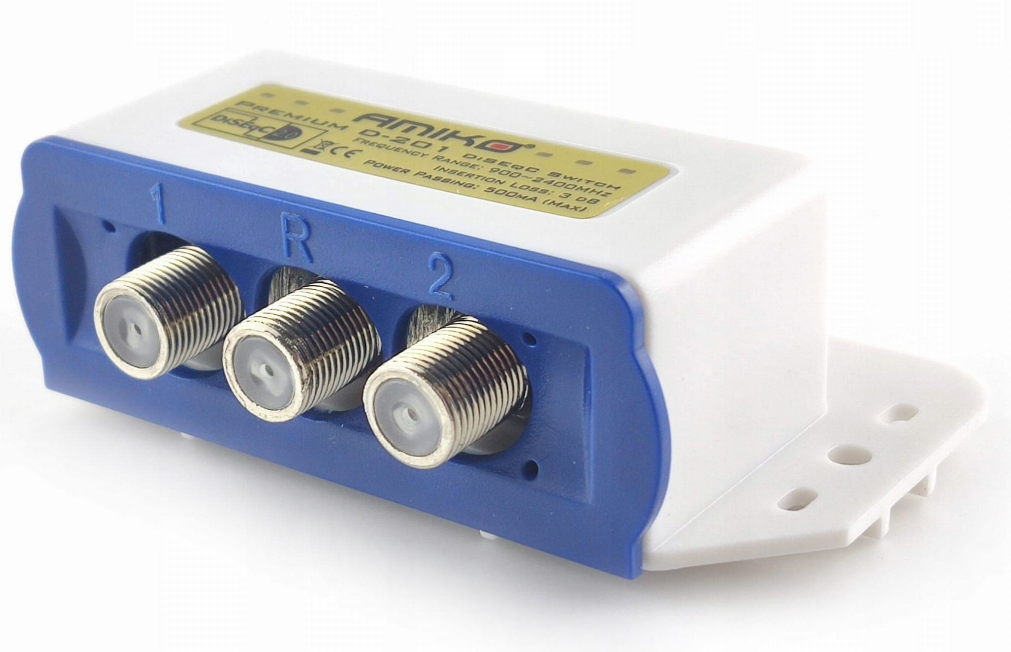 Przełącznik DiSEqC 2/1 Amiko pozwala na automatyczne przełączanie odbiornika satelitarnego między konwerterami (LNB), ustawionymi na odbiór z max. dwóch pozycji satelitarnych (np. Astra, Hotbird). Innymi słowy urządzenie pozwala przesłać jednym kablem sygnał z dwóch satelit.