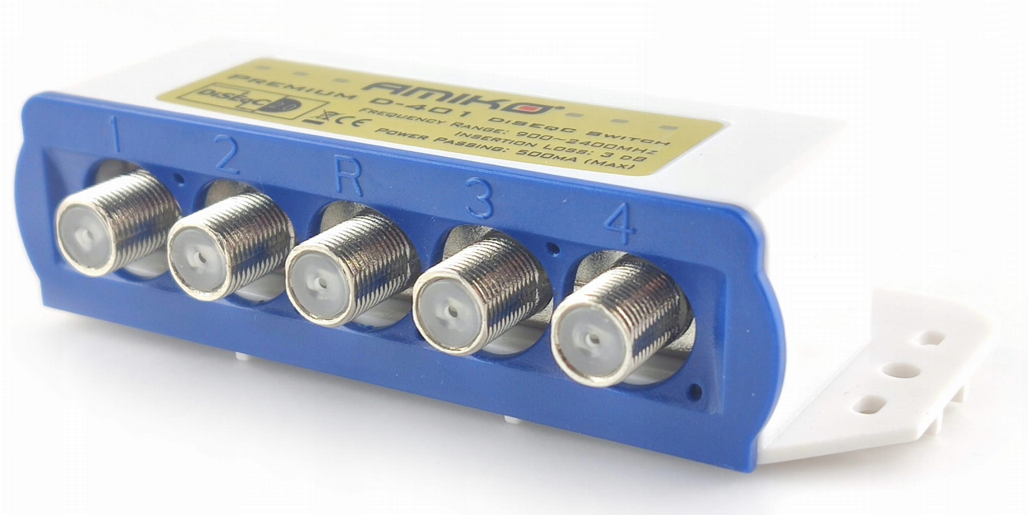 Przełącznik DiSEqC 4/1 Amiko pozwala na automatyczne przełączanie odbiornika satelitarnego między konwerterami (LNB) ustawionymi na odbiór z max. czterech pozycji satelitarnych (np. Astra, Hotbird i inne). Innymi słowy urządzenie pozwala przesłać jednym kablem sygnał z czterech satelit.