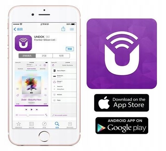 Konfiguracja i kontrola może odbywać się poprzez aplikację UNDOK, która jest dostępna dla iOS i Android.