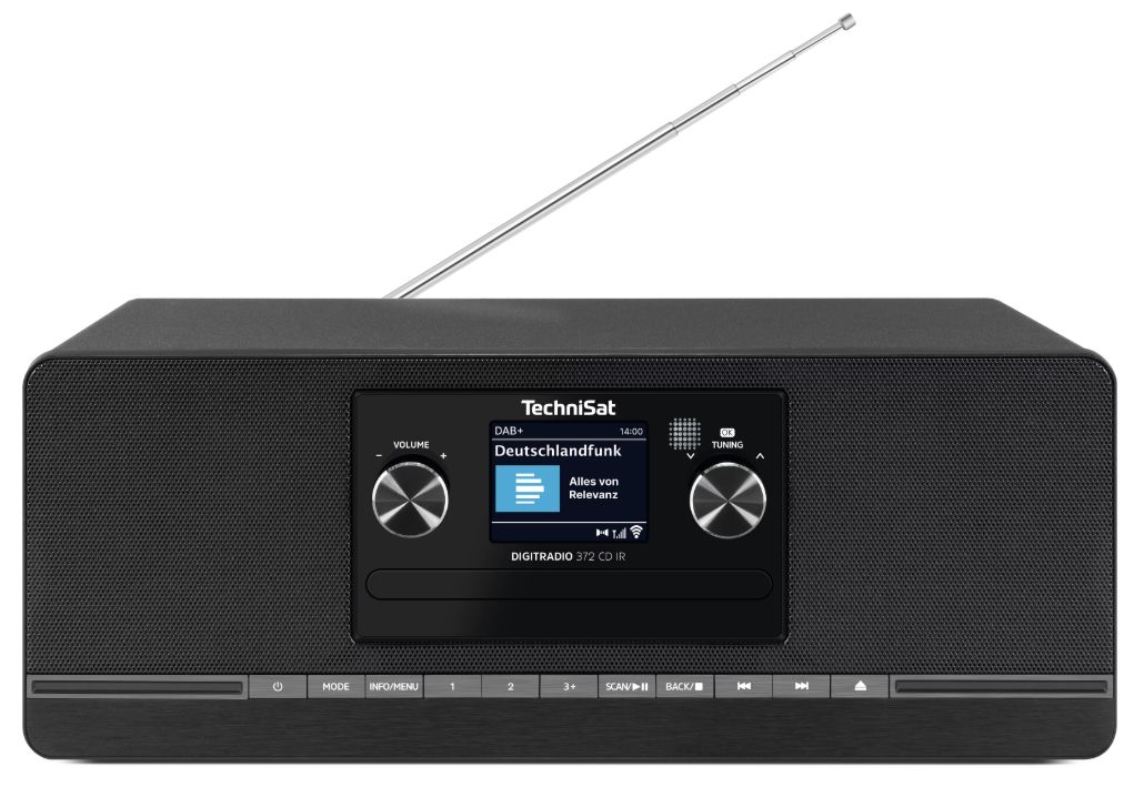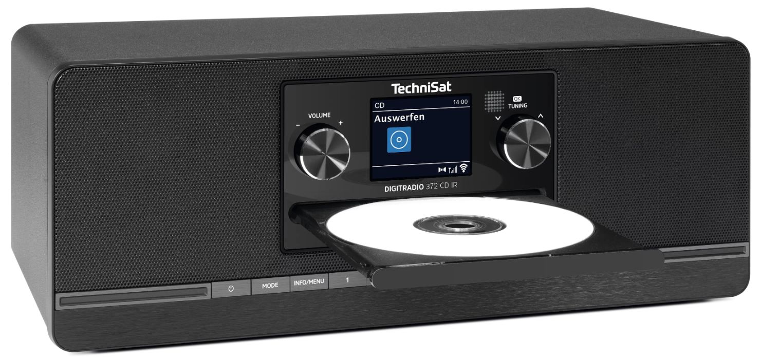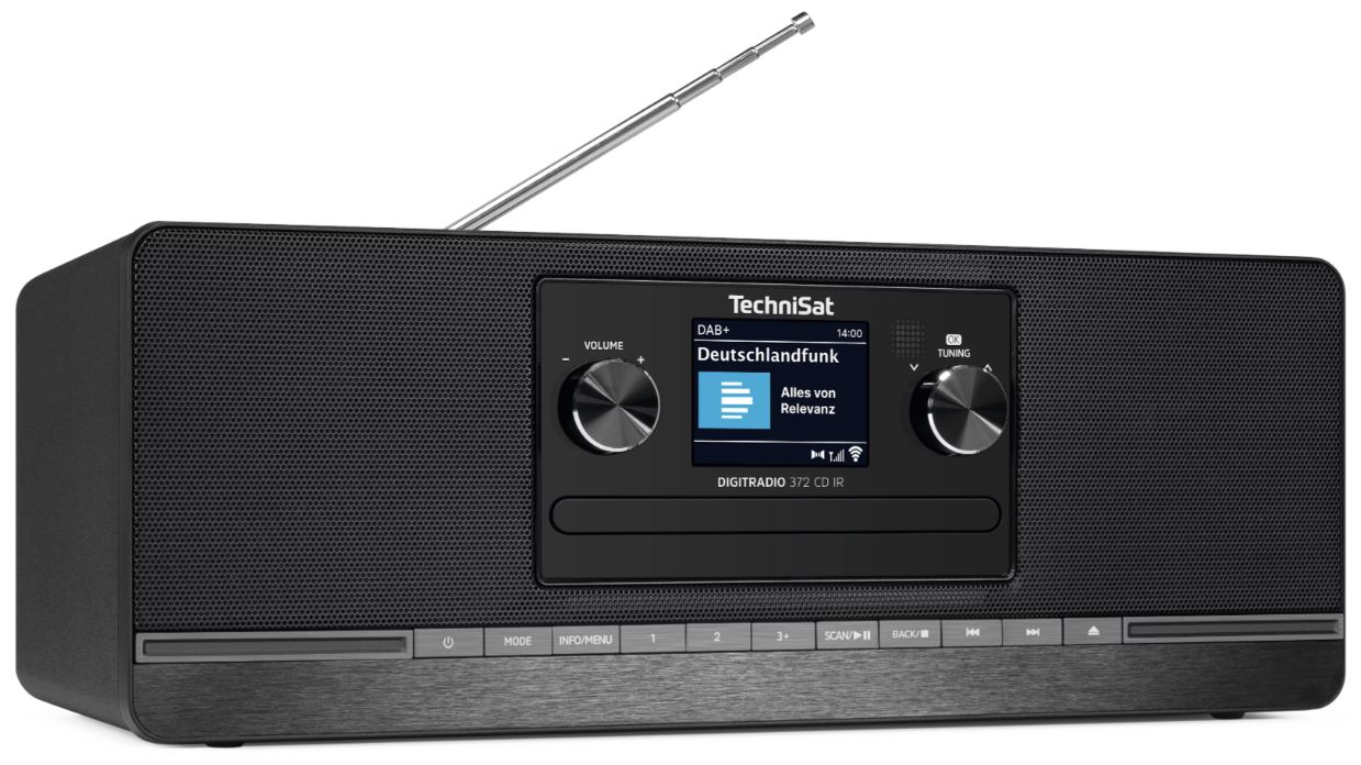 Radio Technisat 372 IR to wysokiej jakości urządzenie, służące do odbioru stacji radiowych nadawanych w standardzie UKF/FM oraz DAB+, a także stacji radia internetowego. Radio posiada wbudowany odtwarzacz płyt CD oraz złącze USB z funkcją odtwarzania MP3. Funkcja Bluetooth umożliwia bezprzewodowe przesyłanie muzyki, podcastów i audiobooków z urządzeń mobilnych (telefon lub tablet).