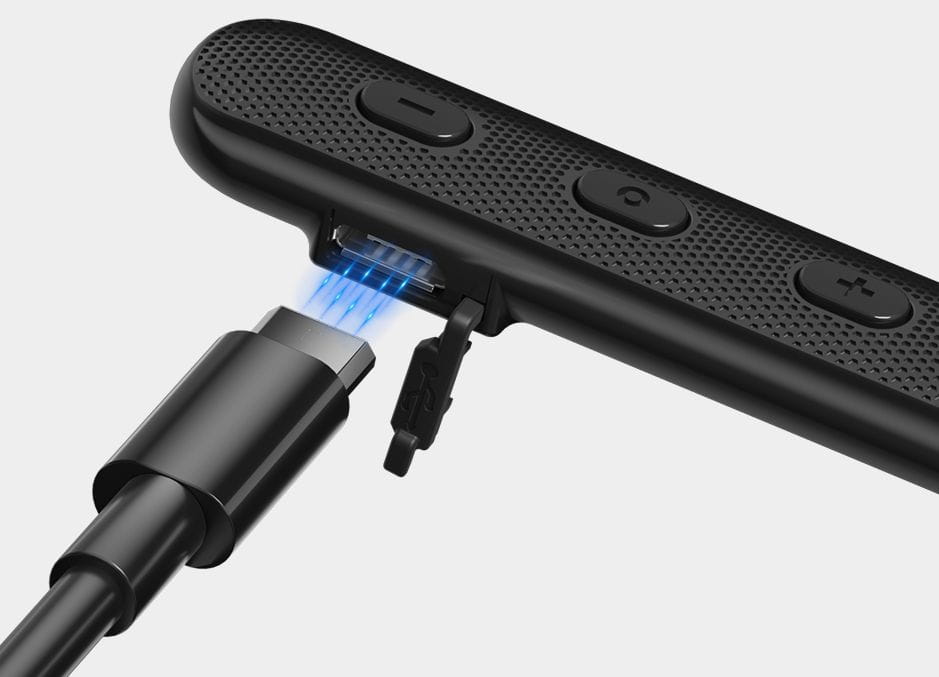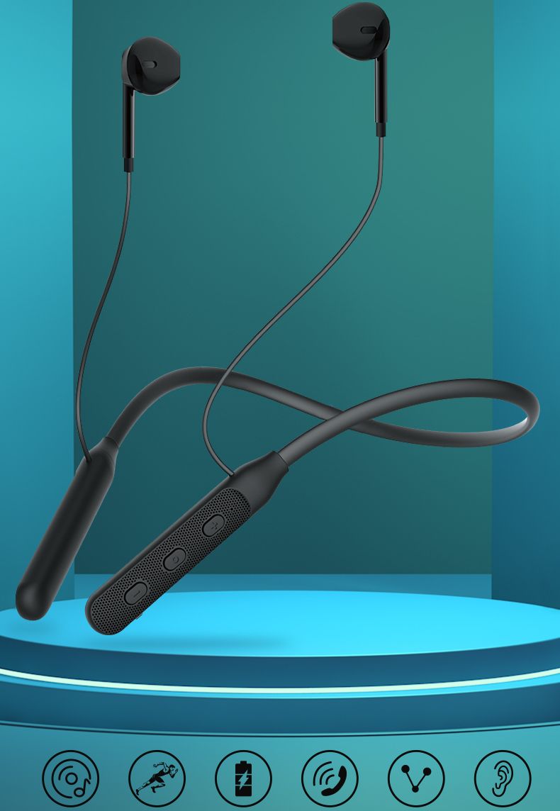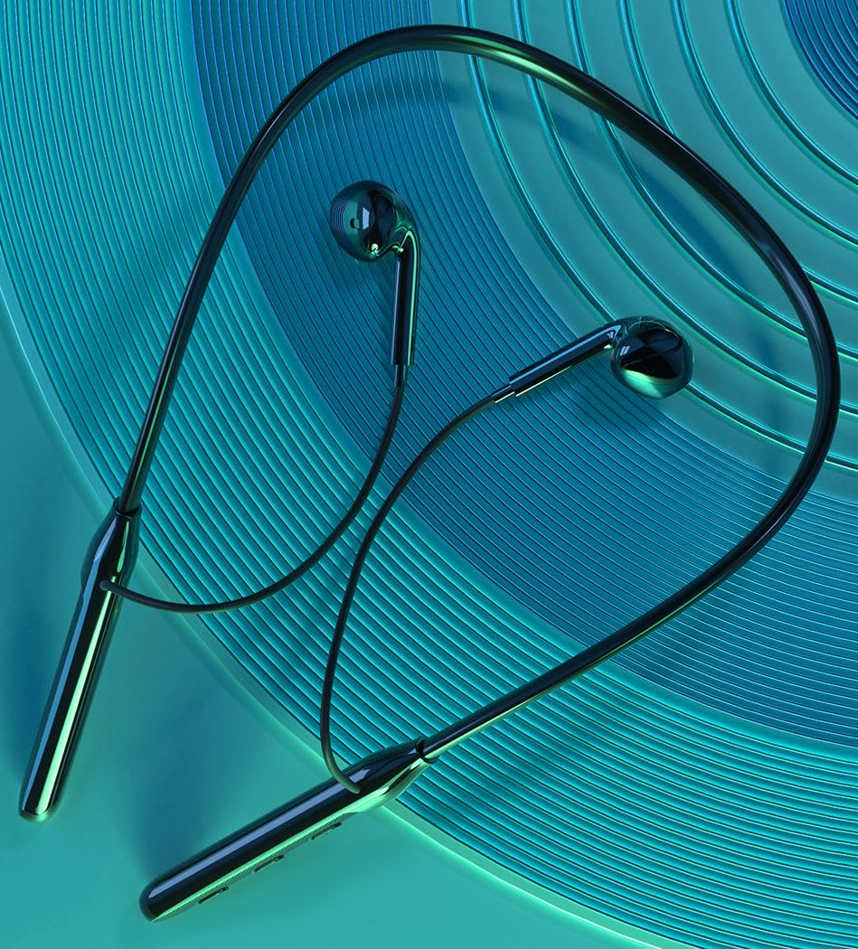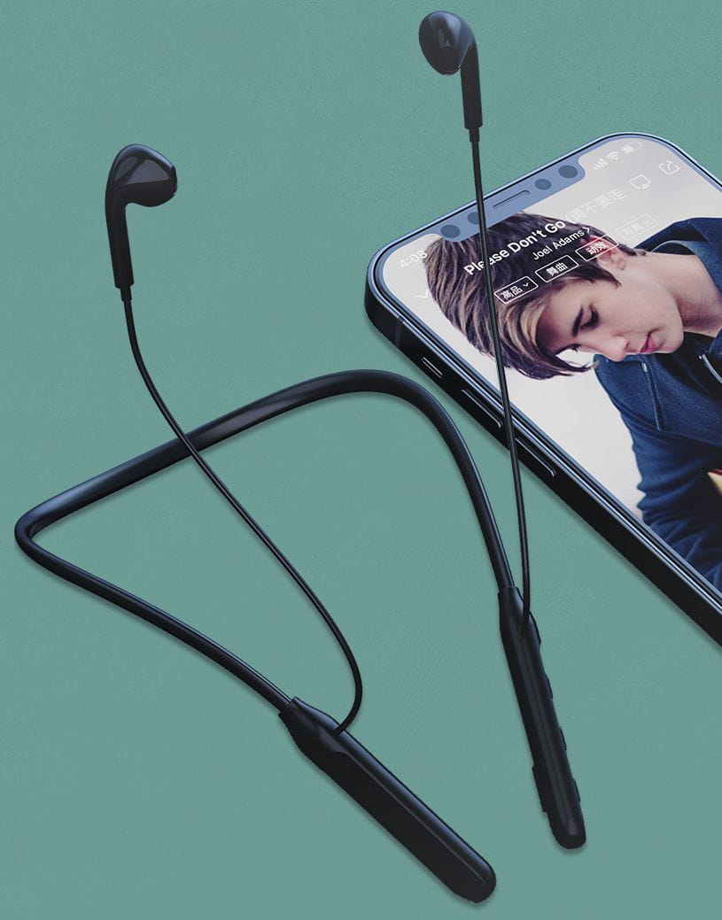 - Elastyczny pałąk na szyję zapobiega zgubieniu słuchawek