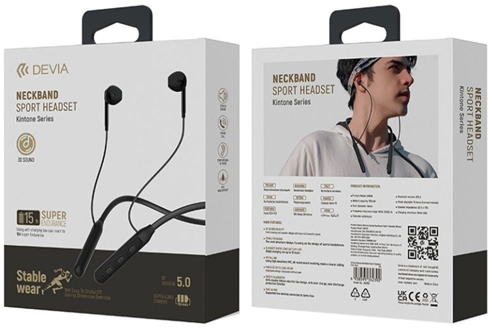 - Bezprzewodowe słuchawki Devia NECKBAND SPORT HEADSET Bluetooth