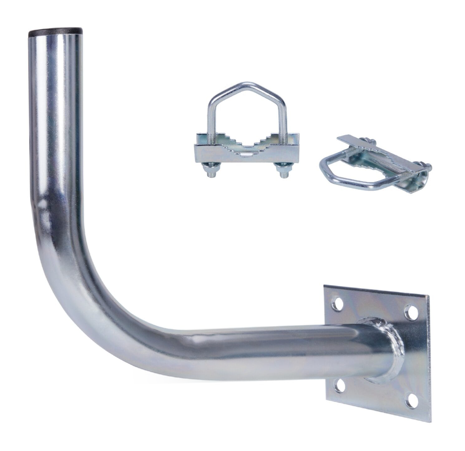 Uchwyt umożliwiający montaż anteny satelitarnej lub anteny telewizji naziemnej do barierki balkonowej poziomej lub pionowej. Mocowanie wykonane jest ze stali ocynkowanej. Wzmocniona podstawa została wykonana z blachy o grubości 4mm.