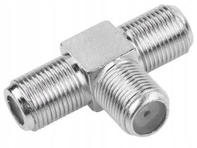 Przejściówka gniazdo F na 2x gniazdo F, czyli tzw. "trójnik" umożliwia podzielenie sygnału na dwa niezależne.