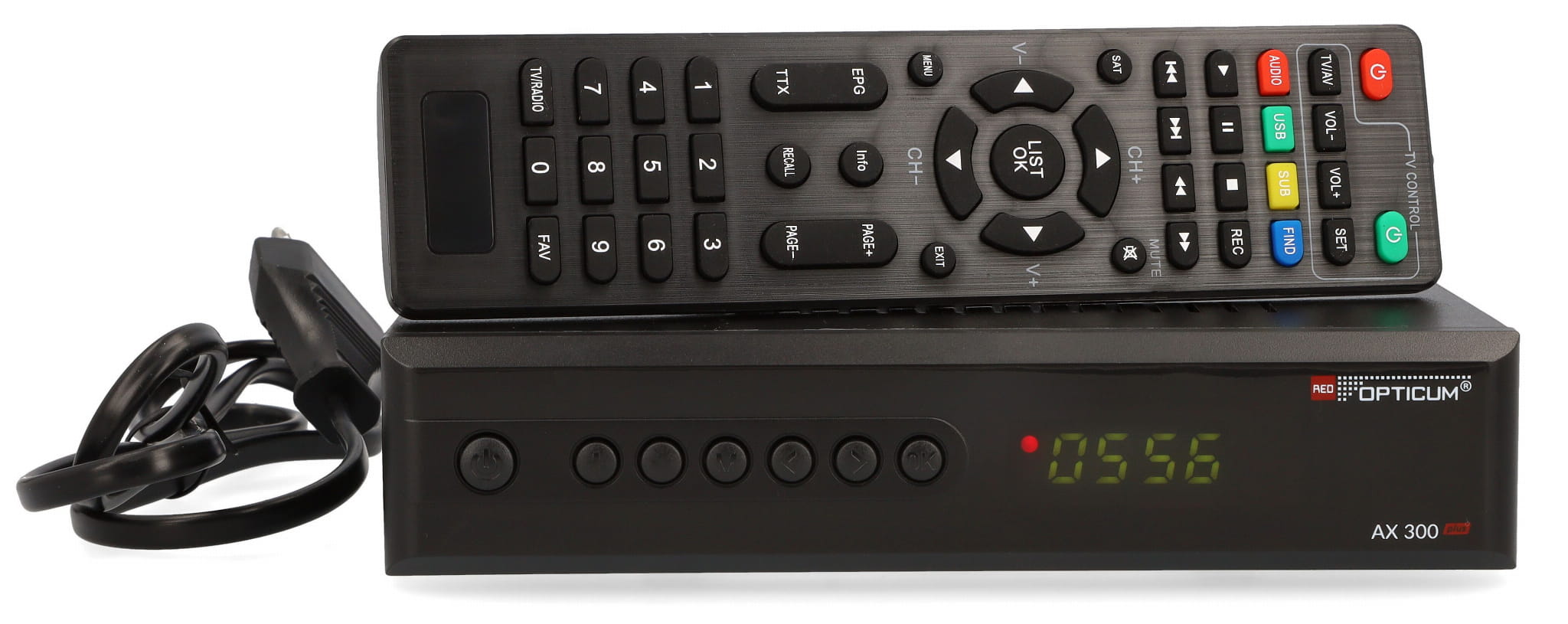 Nowoczesny tuner telewizji satelitarnej Opticum AX300 Plus przeznaczony do odbioru bezpłatnych, niekodowanych kanałów FTA (również w rozdzielczości HD).