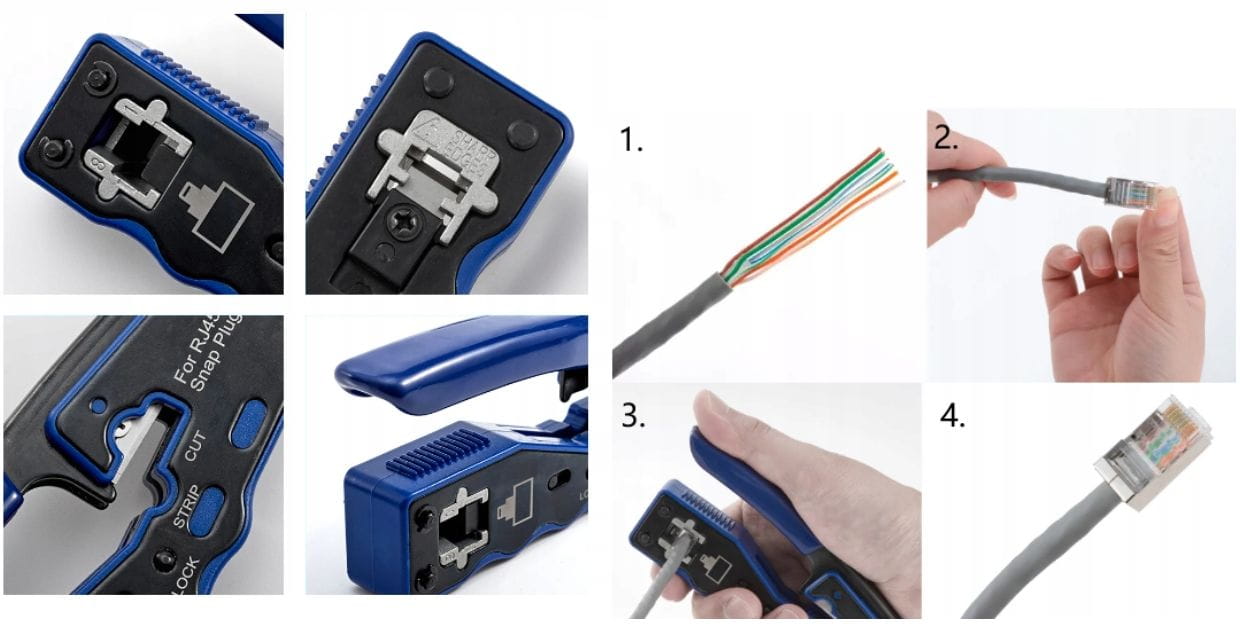 - zaciskacz wtyków RJ45 (przelotowych i standardowych)