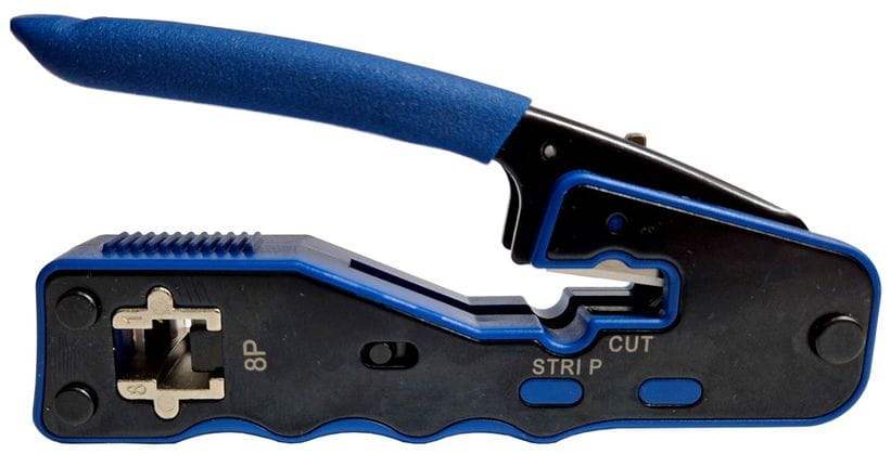 Zaciskarka do wtyków modularnych i przelotowych typu: 8P8C/RJ45. Specjalny mechanizm dociskowy uniemożliwia niedostateczny docisk złącz.