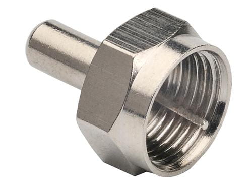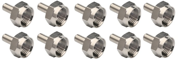 Rezystor obciążeniowy, opornik F 75 Ω , czyli złącze wykorzystywane w instalacjach antenowych. Wykonane z mosiądzu powlekanego galwanicznie. Składając jedną ofertę kupują Państwo 10szt. wtyku. Rezystor montuje się w nieobciążonych wyjściach odgałęźników, rozgałęźników i wzmacniaczy w celu zakończenia pionu.