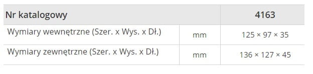 Solidnie wykonana plastikowa obudowa zewnętrzna Televes 4163 daje możliwość zamontowania na zewnątrz takich urządzeń jak rozgałęźnik, zwrotnica, wzmacniacz lub cokolwiek innego. Obudowa wykonana jest z tworzywa sztucznego ABS odpornego na niekorzystne warunki atmosferyczne. Skrzynkę można zamontować na maszcie (przy użyciu opaski zaciskowej - są dostępne w naszej ofercie) lub bezpośrednio do ściany (obudowa posiada odpowiednie otwory). Chroni przed deszczem i wodą.