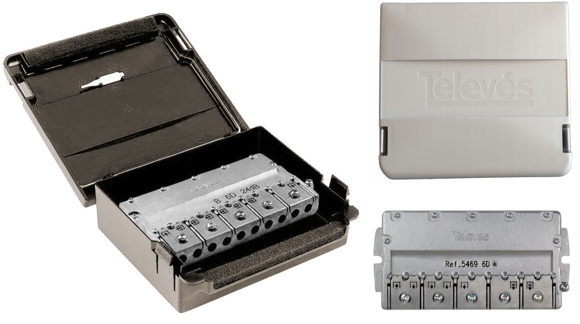 Wysokiej klasy rozgałęźnik 1/6 Televes ref. 5469, czyli 1 wejście, 6 wyjść, pracuje w zakresie 5 MHz - 2400 MHz. Umożliwia podzielenie sygnału telewizji naziemnej DVB-T2 lub kablowej DVB-C na sześć telewizorów. Współpracuje z systemem Unicable w instalacjach satelitarnych opartych o tego typu konwerter i umożliwia podział sygnału Unicable do sześciu dekoderów satelitarnych.