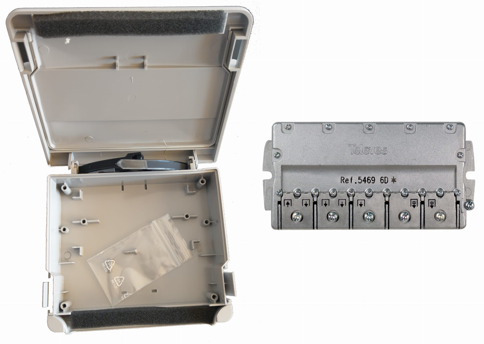 Zestaw TELEVES 5469 Puszka + 4163 Rozgałęźnik 1/6