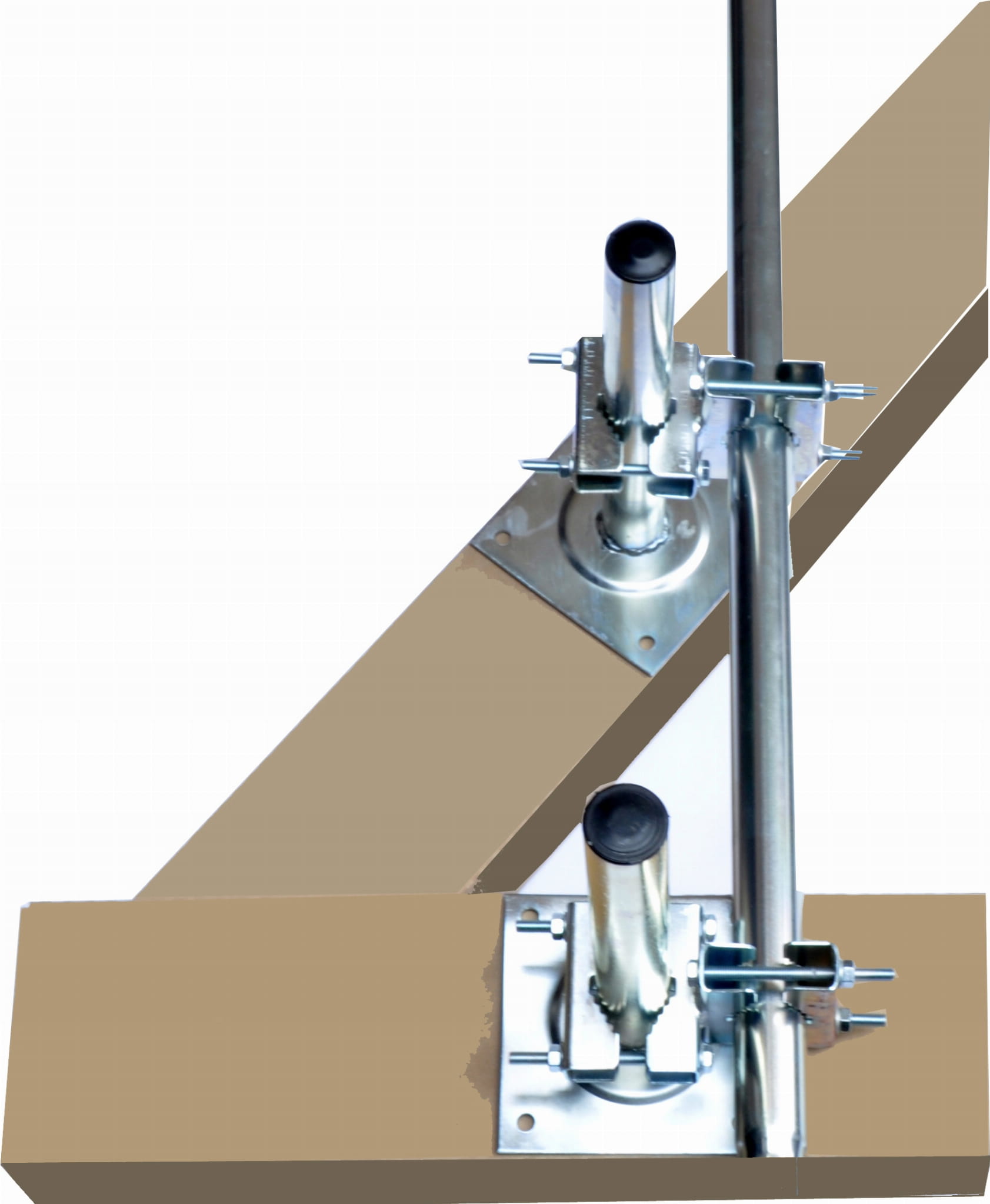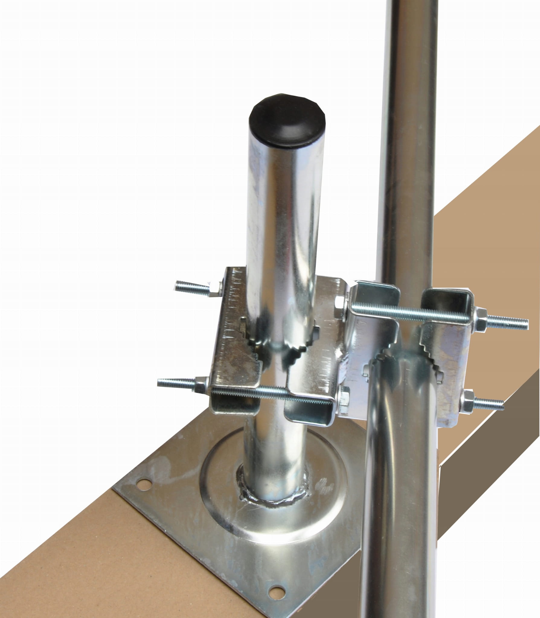W komplecie dwa uchwyty pionowe i dwa krzyżaki z cybantów do mocowania masztu na poddaszu do krokwi dachowych (masztu nie ma w komplecie). Elementy składają się z odcinków stalowej rury o średnicy 38 mm i długości 30 cm, zamocowanych na kwadratowych podstawach. Do rur przytwierdza się za pomocą specjalnych, krzyżowych mocowań maszt, który dalej przechodzi przez poszycie dachu.