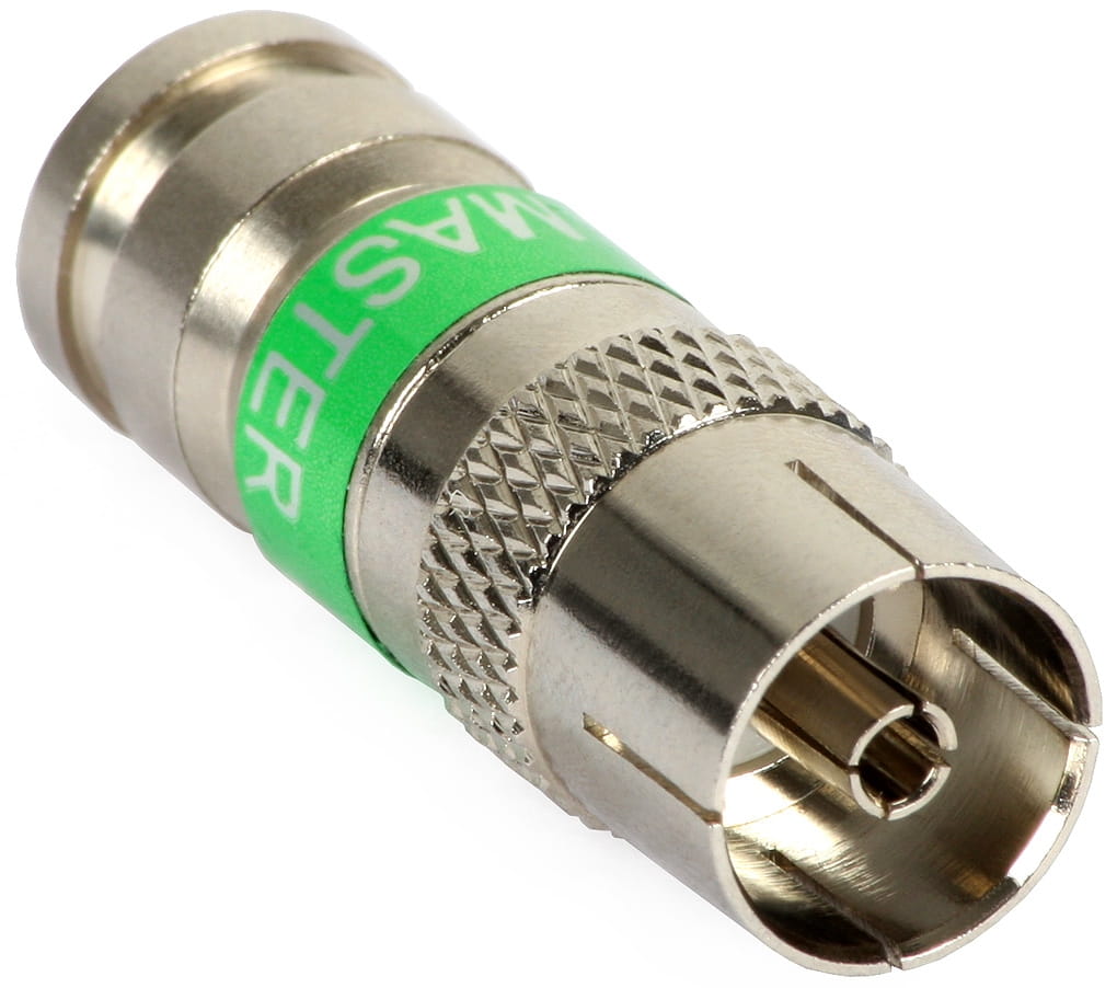 Wysokiej klasy złącze kompresyjne, marki MASTER. Złącze posiada podwójną kompresje dookolną, gwarantującą perfekcyjne połączenie z kablem. Dokładnie wykonany gwint gwarantuje łatwe wetknięcie na gniazdo antenowe, przy minimalnym tłumieniu. Złącze będące przedmiotem oferty doskonale zastępuje złącza PCT IEC serii 9. Powszechnie używane w instalacjach telewizyjnych (w tym telewizji naziemnej DVB-T i kablowej DVB-C).